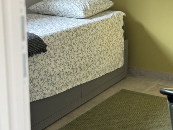 - De 3 chambres spacieuses avec literie de qualité dont une au rez-de-chaussée avec salle de bains privative ( avec un lit en  80 cm dépliable en lit de 160 cm) et à l'étage deux belles chambres avec un lit en 160 cm pour l'une et un lit en 180 cm pour l'autre. Dans le bureau à l'étage, il y a également un canapé pour un couchage d'appoint.