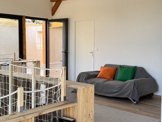 - Un vaste séjour lumineux avec cuisine ouverte toute équipée