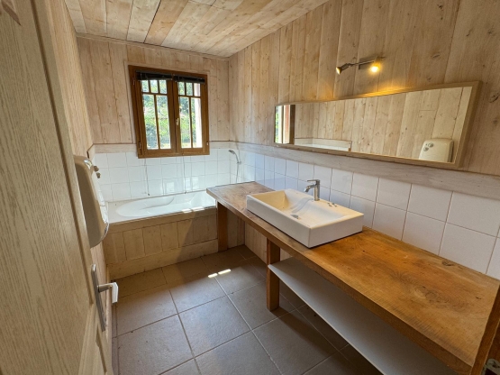 - Vaste séjour avec une cuisine ouverte, une arrière cuisine,  quatre chambres, une salle d'eau ( avec douche) et une salle de bains (avec baignoire), un WC séparé.