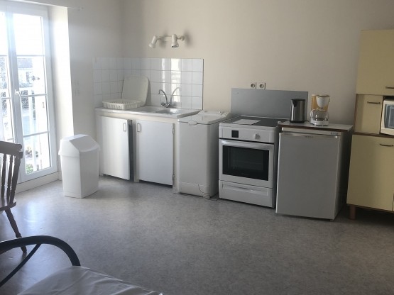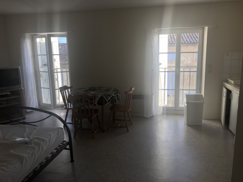 À louer, studio entièrement meublé au deuxième étage d'un immeuble, situé au centre-ville de Lectoure, composé de :